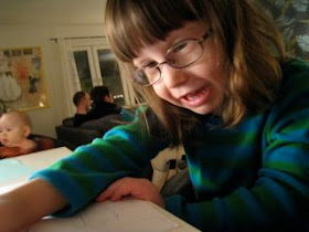 Svägerskan matar Lill-Snorpan och I visar sina skrivkunskaper.